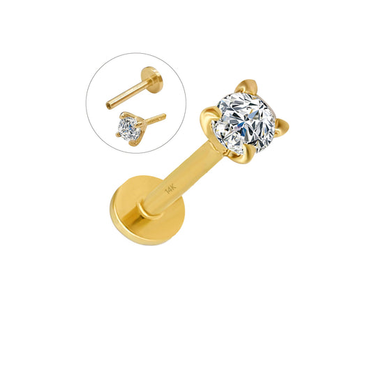 Wholesale 14K Yellow and white Gold Labret bar length 6mm 2.5mm cz